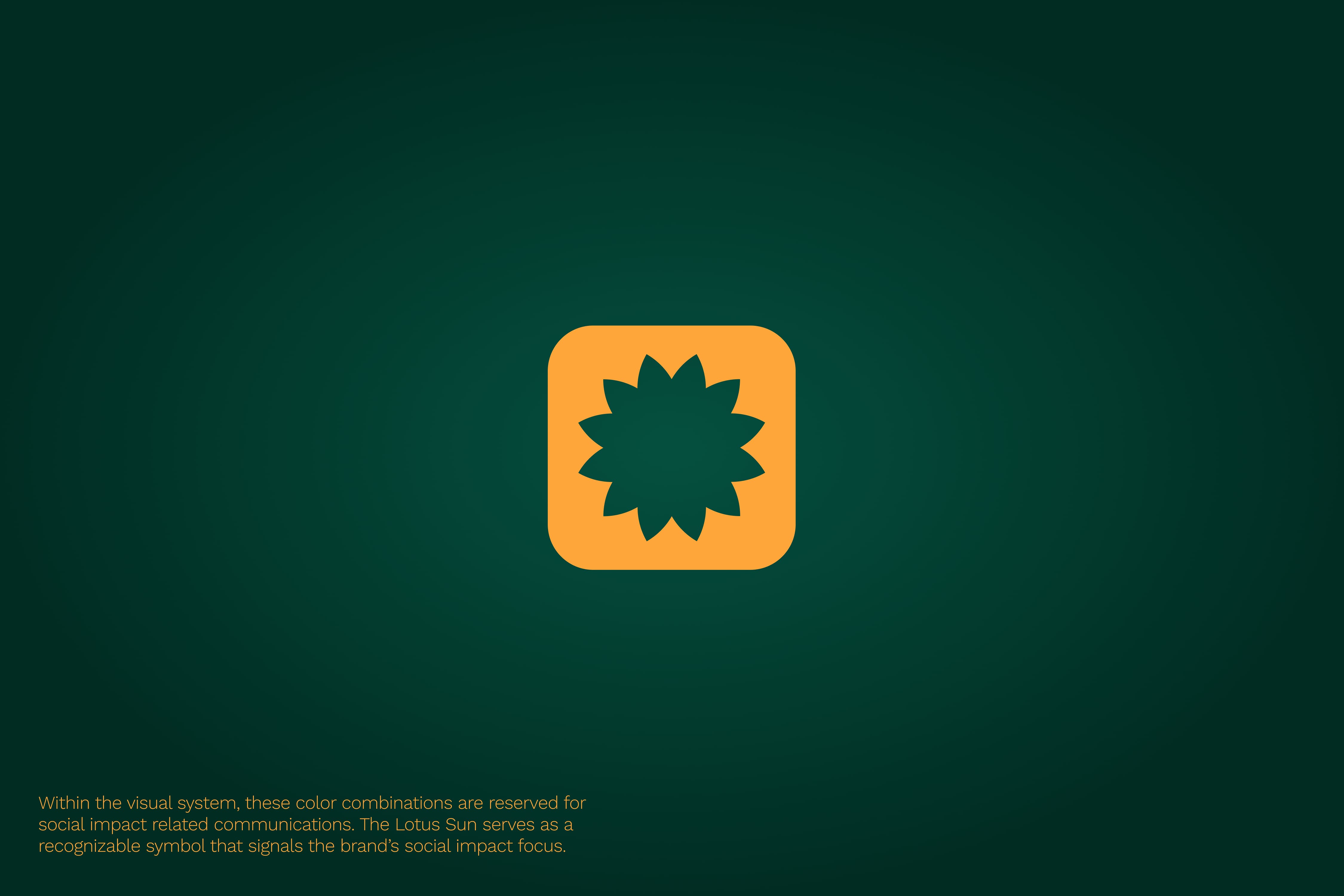 The logomark draws inspiration from the birth of the lotus flower and the ecosystem that surrounds it. At the center lies the lotus itself, representing clarity, transformation, and impact. Around it, abstract leaf forms symbolize the broader environment the brand interacts with: startups, scale-ups, organizations, and the people its work ultimately touches.